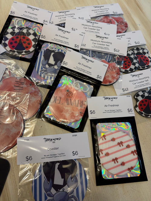 Add a bold, retro flair to your ride with this black and white checker ladybug-themed neoprene car coaster set! Made from high-quality neoprene, these coasters absorb moisture and spills to keep your cup holders clean and dry. A stylish and functional accessory for any car.